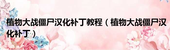 植物大战僵尸汉化补丁教程(植物大战僵尸汉化补丁)