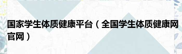 导读 大家好,今天小六子来为大家解答以下的问题,关于国家学生体质健康平台,全国学生体质健康网官网这个很多人还不知道,现在让我们一起来看看