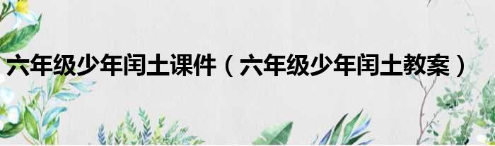 大家好,今天小六子来为大家解答以下的问题,关于六年级少年闰土课件,六年级少年闰土教案这个很多人还不知道,现在让我们一起来看看吧!