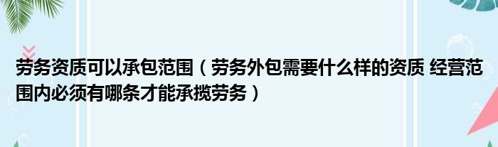 劳务资质可以承包范围(劳务外包需要什么样的资质 经营范围内必须有哪条才能承揽劳务)