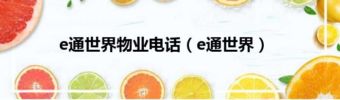 大家好,今天小六子来为大家解答以下的问题,关于e通世界物业电话,e通世界这个很多人还不知道,现在让我们一起来看看吧!