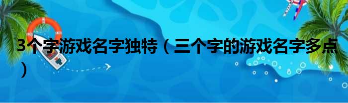 3个字游戏名字独特(三个字的游戏名字多点)