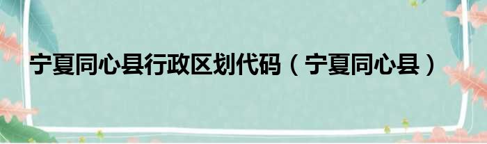 导读 大家好,今天小六子来为大家解答以下的问题,关于宁夏同心县行政区划代码,宁夏同心县这个很多人还不知道,现在让我们一起来看看吧!1、属于