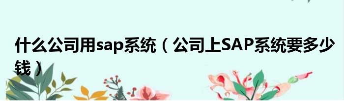 导读 大家好,今天小六子来为大家解答以下的问题,关于什么公司用sap系统,公司上SAP系统要多少钱这个很多人还不知道,现在让我们一起来看看吧!1