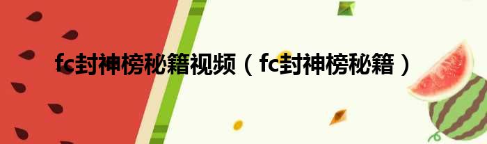 fc封神榜秘籍视频(fc封神榜秘籍)