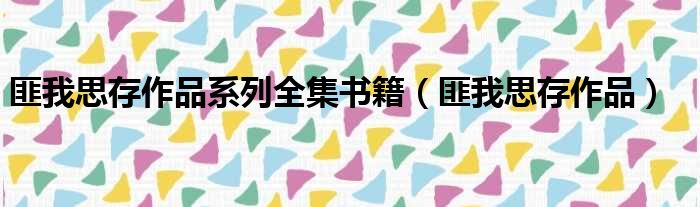 导读 大家好,今天小六子来为大家解答以下的问题,关于匪我思存作品系列全集书籍,匪我思存作品这个很多人还不知道,现在让我们一起来看看吧!1、