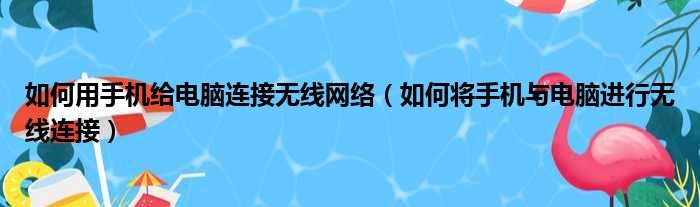 如何用手机给电脑连接无线网络(如何将手机与电脑进行无线连接)