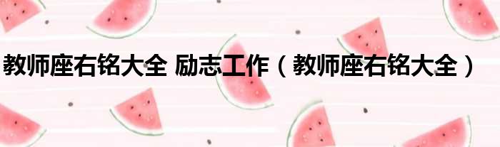 导读 大家好,今天小六子来为大家解答以下的问题,关于教师座右铭大全 励志工作,教师座右铭大全这个很多人还不知道,现在让我们一起来看看吧!1