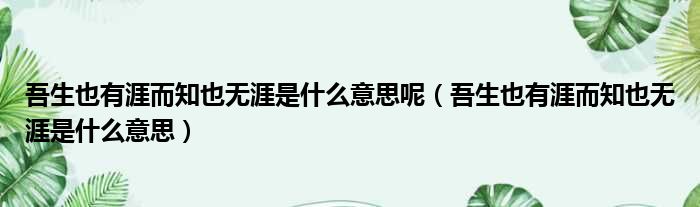 吾生也有涯而知也无涯是什么意思呢(吾生也有涯而知也无涯是什么意思)
