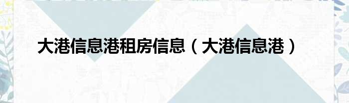 导读 大家好,今天小六子来为大家解答以下的问题,关于大港信息港租房信息,大港信息港这个很多人还不知道,现在让我们一起来看看吧!1、是要去大