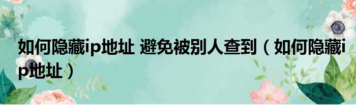 如何隐藏ip地址 避免被别人查到(如何隐藏ip地址)