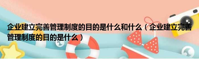 企业建立完善管理制度的目的是什么和什么(企业建立完善管理制度的目的是什么)