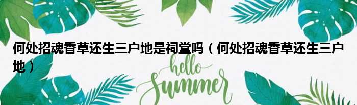 导读 大家好,今天小六子来为大家解答以下的问题,关于何处招魂香草还生三户地是祠堂吗,何处招魂香草还生三户地这个很多人还不知道,现在让我们