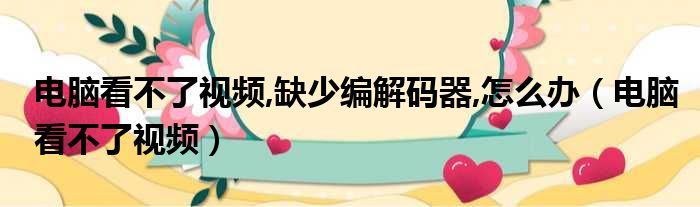 电脑看不了视频,缺少编解码器,怎么办(电脑看不了视频)