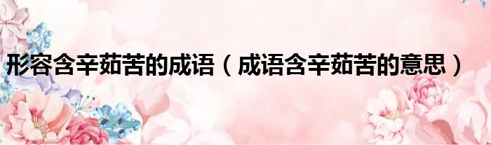 形容含辛茹苦的成语(成语含辛茹苦的意思)