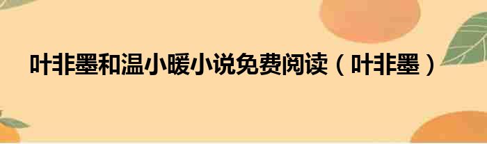 大家好,今天小六子来为大家解答以下的问题,关于叶非墨和温小暖小说免费阅读,叶非墨这个很多人还不知道,现在让我们一起来看看吧!