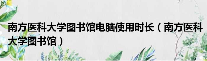 南方医科大学图书馆电脑使用时长(南方医科大学图书馆)