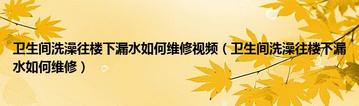 卫生间洗澡往楼下漏水如何维修视频(卫生间洗澡往楼下漏水如何维修)