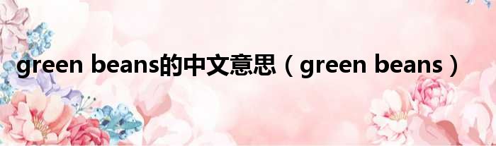 大家好,今天小六子来为大家解答以下的问题,关于green beans的中文意思,green beans这个很多人还不知道,现在让我们一起来看看吧!