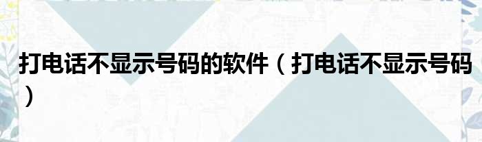 打电话不显示号码的软件,打电话不显示号码很多人还不知道,乐儿来为大家解答以上问题,现在让我们一起来看看吧!
