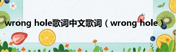 wrong hole歌词中文歌词(wrong hole)