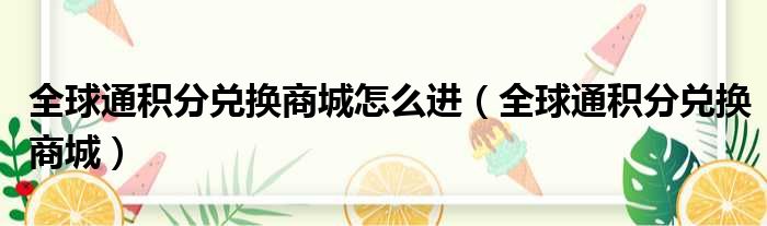 全球通积分兑换商城怎么进(全球通积分兑换商城)