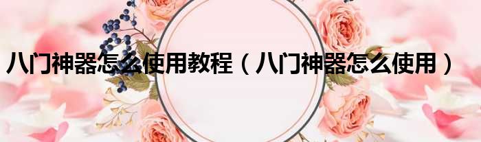 八门神器怎么使用教程,八门神器怎么使用很多人还不知道,乐儿来为大家解答以上问题,现在让我们一起来看看吧!