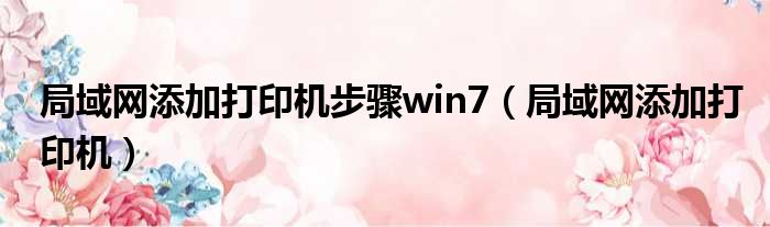 局域网添加打印机步骤win7(局域网添加打印机)