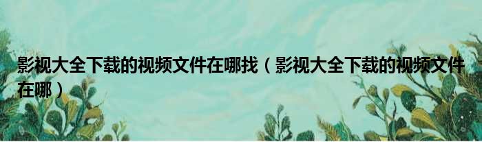 影视大全下载的视频文件在哪找(影视大全下载的视频文件在哪)