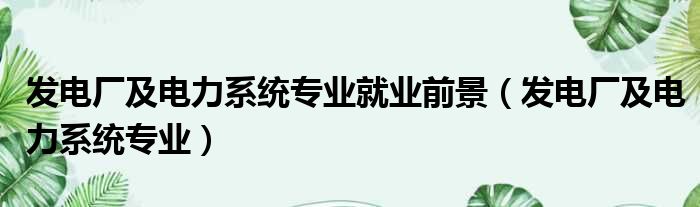发电厂及电力系统专业就业前景(发电厂及电力系统专业)