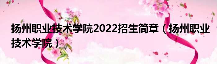 扬州职业技术学院2022招生简章(扬州职业技术学院)