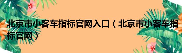 北京市小客车指标官网入口(北京市小客车指标官网)