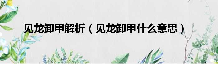 见龙卸甲解析(见龙卸甲什么意思)