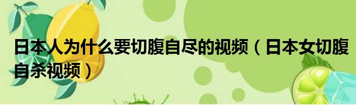 日本人为什么要切腹自尽的视频(日本女切腹自杀视频)