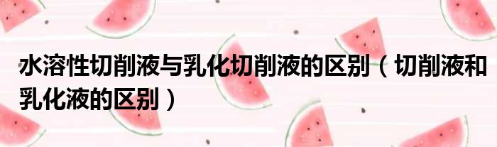 导读 大家好,今天小六子来为大家解答以下的问题,关于水溶性切削液与乳化切削液的区别,切削液和乳化液的区别这个很多人还不知道,现在让我们一