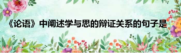 导读 大家好,今天小六子来为大家解答以下的问题,关于《论语》中阐述学与思的辩证关系的句子是这个很多人还不知道,现在让我们一起来看看吧!1、