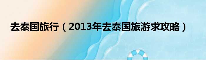 大家好,今天小六子来为大家解答以下的问题,关于去泰国旅行,2013年去泰国旅游求攻略这个很多人还不知道,现在让我们一起来看看吧!
