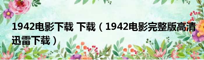 导读 大家好,今天小六子来为大家解答以下的问题,关于1942电影下载 下载,1942电影完整版高清迅雷下载这个很多人还不知道,现在让我们一起来看