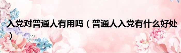 导读 大家好,今天小六子来为大家解答以下的问题,关于入党对普通人有用吗,普通人入党有什么好处这个很多人还不知道,现在让我们一起来看看吧!1