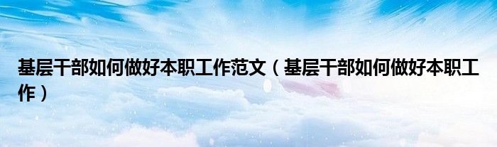 基层干部如何做好本职工作范文(基层干部如何做好本职工作)