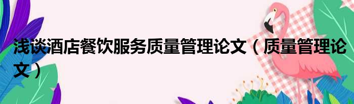 浅谈酒店餐饮服务质量管理论文(质量管理论文)