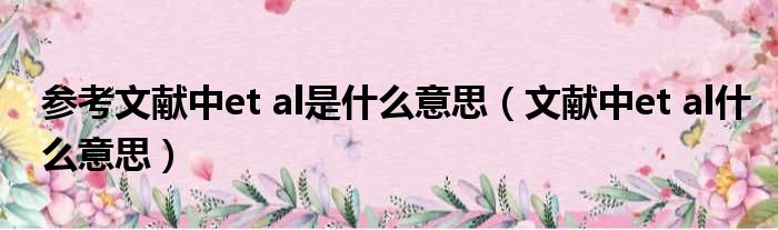 大家好,今天小六子来为大家解答以下的问题,关于参考文献中et al是什么意思,文献中et al什么意思这个很多人还不知道,现在让我们一起来看看吧!