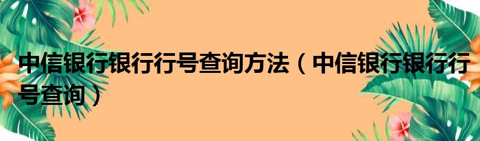 中信银行银行行号查询方法(中信银行银行行号查询)