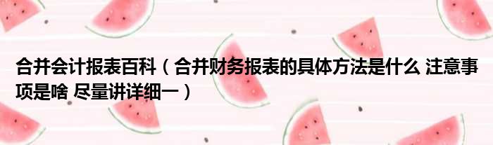 合并会计报表百科(合并财务报表的具体方法是什么 注意事项是啥 尽量讲详细一)