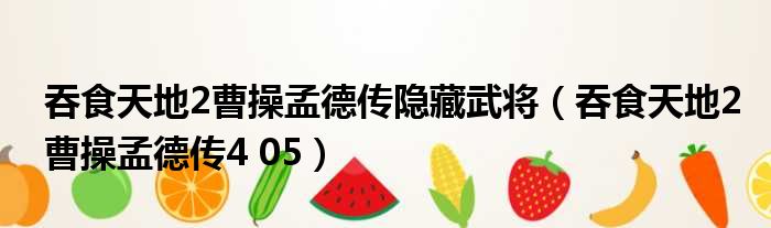 导读 大家好,今天小六子来为大家解答以下的问题,关于吞食天地2曹操孟德传隐藏武将,吞食天地2曹操孟德传4 05这个很多人还不知道,现在让我们一