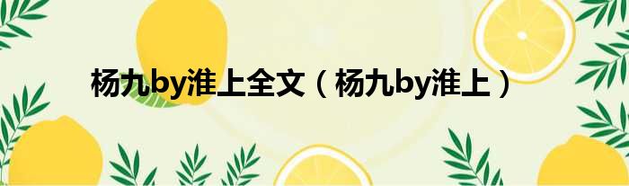 大家好,今天小六子来为大家解答以下的问题,关于杨九by淮上全文,杨九by淮上这个很多人还不知道,现在让我们一起来看看吧!