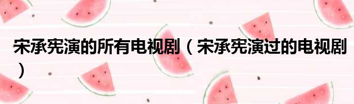 宋承宪演的所有电视剧(宋承宪演过的电视剧)