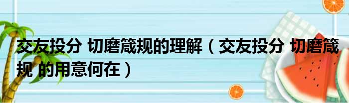 交友投分 切磨箴规的理解(交友投分 切磨箴规 的用意何在)