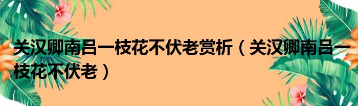导读 大家好,今天小六子来为大家解答以下的问题,关于关汉卿南吕一枝花不伏老赏析,关汉卿南吕一枝花不伏老这个很多人还不知道,现在让我们一起