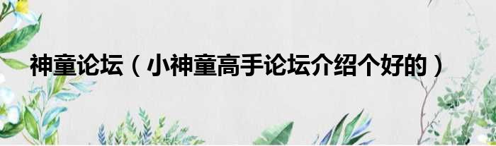 大家好,今天小六子来为大家解答以下的问题,关于神童论坛,小神童高手论坛介绍个好的这个很多人还不知道,现在让我们一起来看看吧!